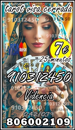 Tarot con visa cerrada ,Videntes Recomendadas por sus aciertos ,baraja Española 910312450 prefijo fuera de España (00 34) PROMOCIÓN 4 € 15 min/ 7 € 25min/ 9€ 35min. / 12€ 45min . 16€ 60 MINU. 20€ 90min ATENCIÓN LAS 24 HORAS LA LLAMADA SE CORTA SOLA / Tarot línea directa 806002109 - 0.49/0.79 cm. min. Fijo/ móvil , SOLO MAYORES DE 18 años Servicio prestado por K.A.V. ap. c 164 c.p.46002 VALENCIA.OFERTAS INCREIBLES