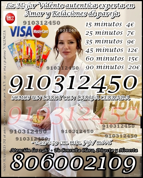 TAROT VISA /Videntes y tarotistas Meraki visas 9 € 35 min - 4€15 min -7€ 25 MIN- 10€ 40 min 15€ 55MIN - 17€ 70min - 20€ 90min-910 312450 / 806002109 - 0,42/0,79 cm € min red fija y red móvil. tarot profesional especialistas en amor y relaciones, aquí la solución a tus problemas en el amor acude a mí y juntos, con ayuda del tarot y mi videncia, sabremos qué rumbo debes tomar para solucionar ese problema que tanto te aqueja. las 24 horas los 365 días del año a su entera disposición. equipo Único de videntes y tarotistas te esperan capacitados 100%. servicio prestado por k.a.v. ap. c 164 cp. 46002 valencia. solo mayores de 18 años