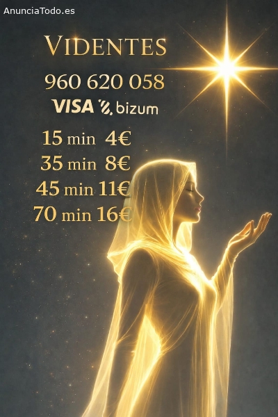 Tarot, Videntes y MédiumConsultas profesionales de tarot, videncia y mediumnidad. Atención seria y confidencial para resolver dudas sobre amor, trabajo, relaciones y decisiones importantes. Respuestas claras, directas y sin rodeos.