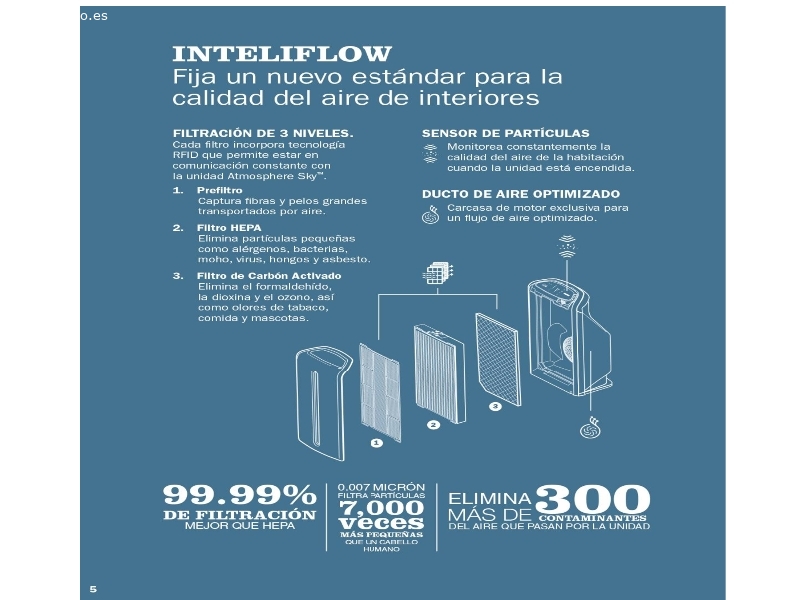 - Filtrado de las partículas 0,007 Micrones (7000 veces más pequeño que un cabello humano)